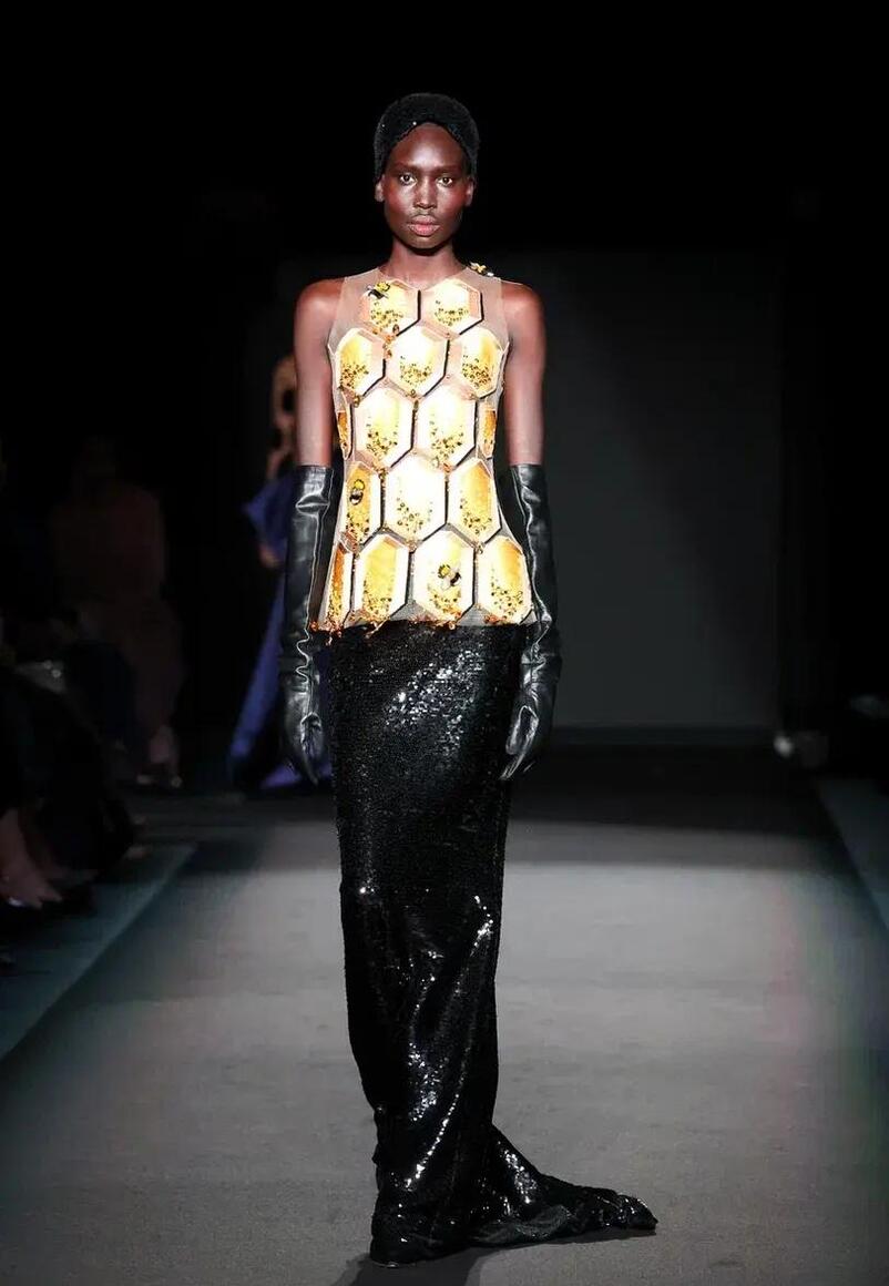 Золотой цвет стал настоящим фаворитом сезона. Оттенок, который обещает стать одним из ключевых в 2025 году, украсил множество коллекций. Вечерние платья с золотым отливом, вышивкой и стразами стали визитной карточкой показов. Дизайнеры, кажется, перестали бояться этого цвета, сделав его символом роскоши и элегантности.